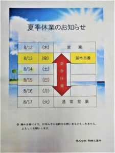 夏季休業のご案内